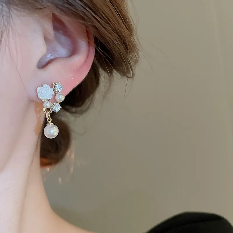 Flower Inlay Rhinestone Drop Earrings